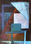 2014contemplatie harmonie diepte donker licht vierkanten driehoek blauwtinten sepia bronsgeel