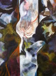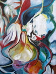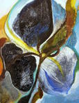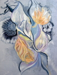 2018uitbundige lila lichtblauwe bloemen op rode achtergrond